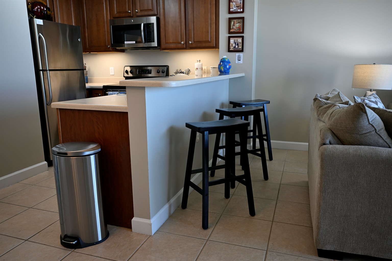 Start your morning with coffee on the spacious balcony while listening to the waves, or wind down with spectacular sunsets over the Gulf, binoculars recommended for spotting marine life! The master bedroom features a king-size bed, flat-screen TV with cable, a large closet, and a private bath with a tub. The guest bathroom, conveniently located in the hallway, offers a vanity and walk-in shower. The dining area seats four comfortably, with additional seating for three at the kitchen bar. A full kitchen and in-unit washer and dryer make longer stays easy and comfortable. No Hidden Fees. All rates include taxes and fees, what you see is what you pay.